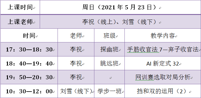 2021年5月23日課程預(yù)告
